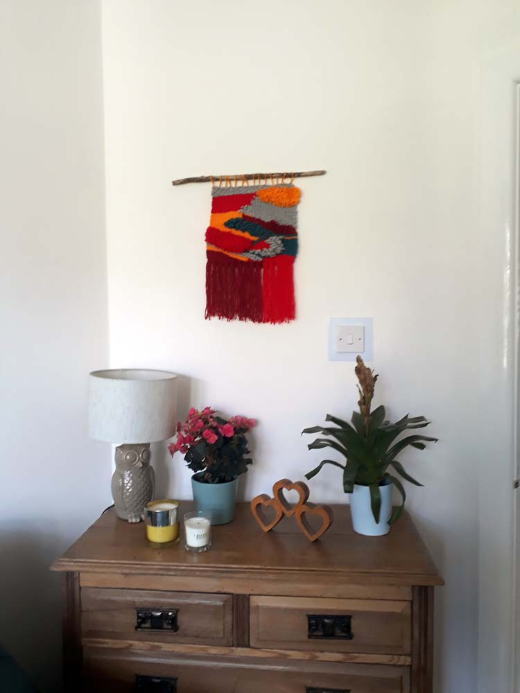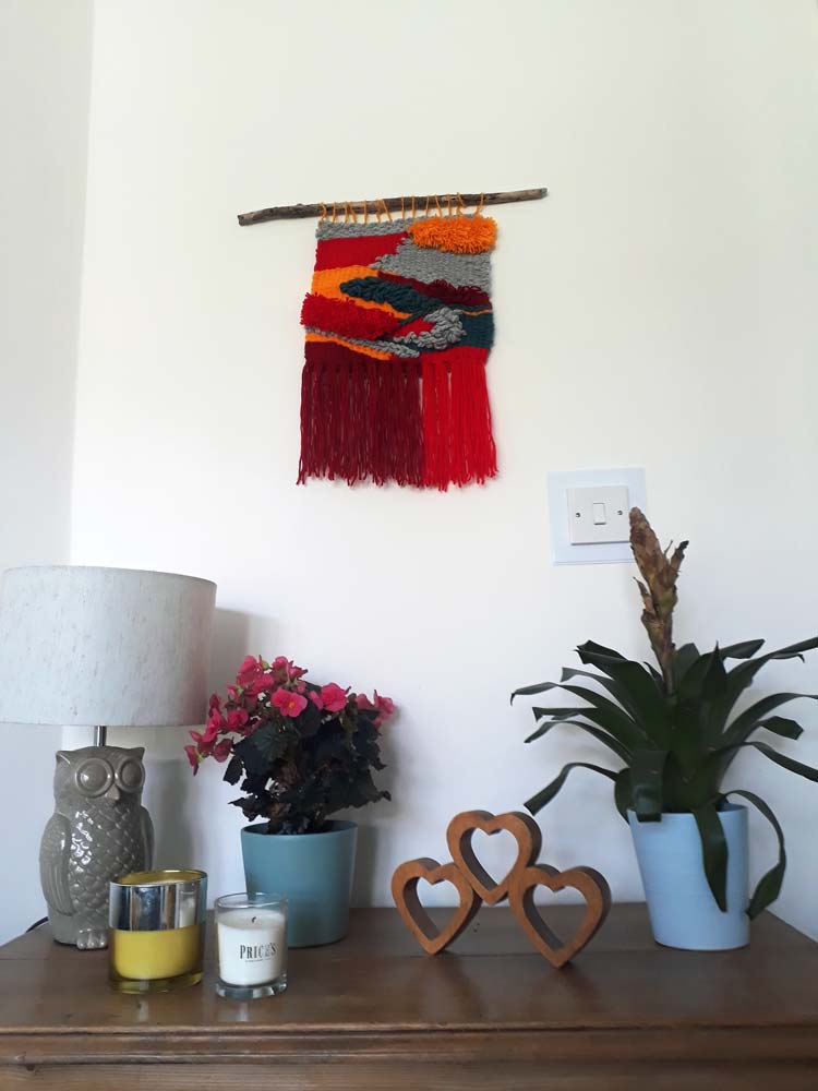 Welly Boots And Anoraks is a contemporary weave depicting the fantastic colours of wellies and rain coats during the heavy rains. The weave is easy to hang and will brighten up any room with its eye catching colours. Stick is provided unless otherwise stated.